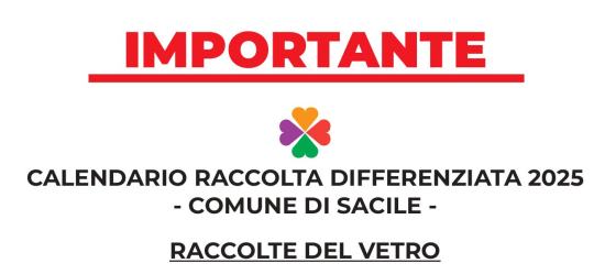 ![]() Informiamo gli utenti che a partire da sabato 20 settembre sarà distribuito questo importante avviso relativo alle prossime raccolte del vetro. Ric... Informiamo gli utenti che a partire da sabato 20 settembre sarà distribuito questo importante avviso relativo alle prossime raccolte del vetro. Ric...